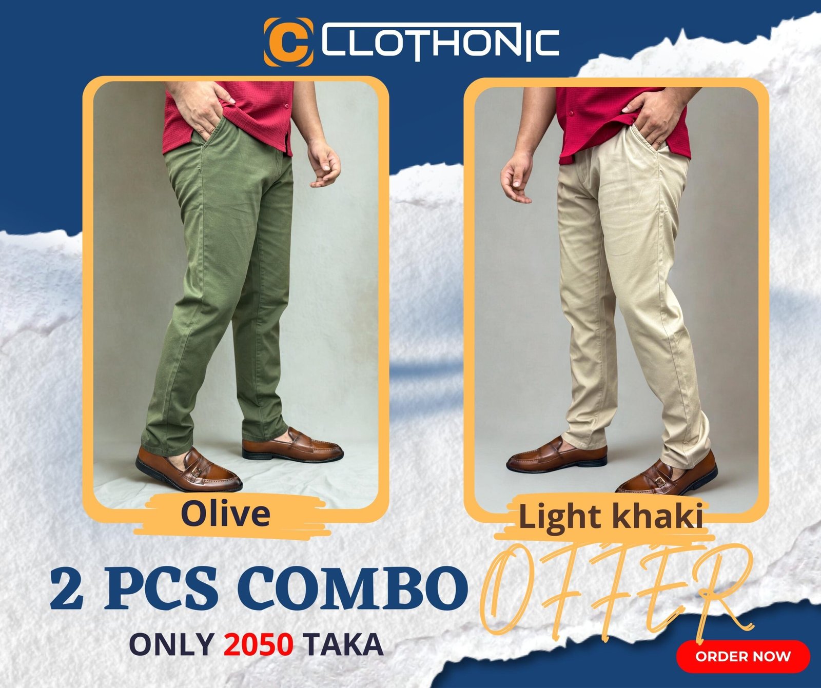 Export Quality Garbading Pant | Olive+Light Khaki 2Pcs