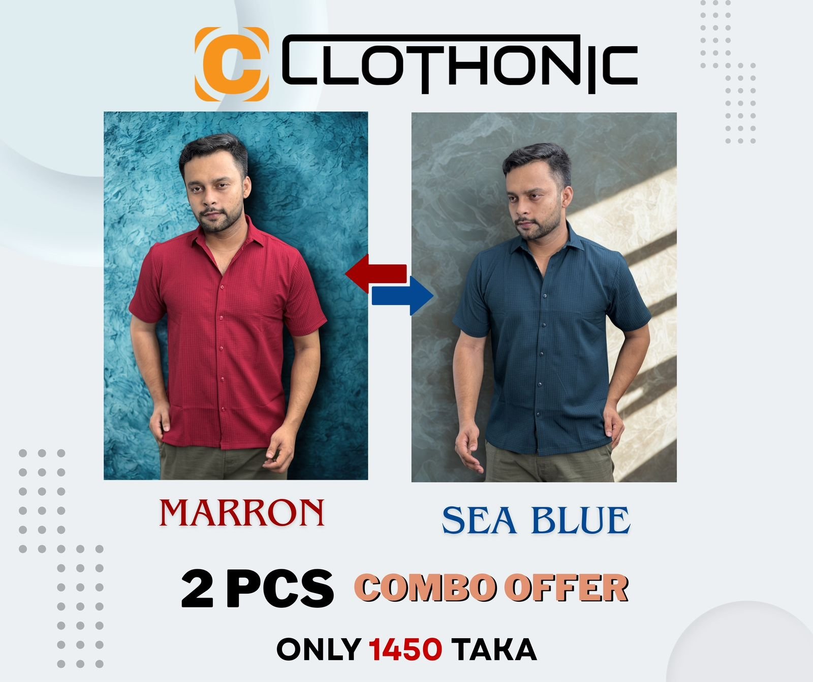 Short Sleev Casual Shirt | Sea Blue+Marron