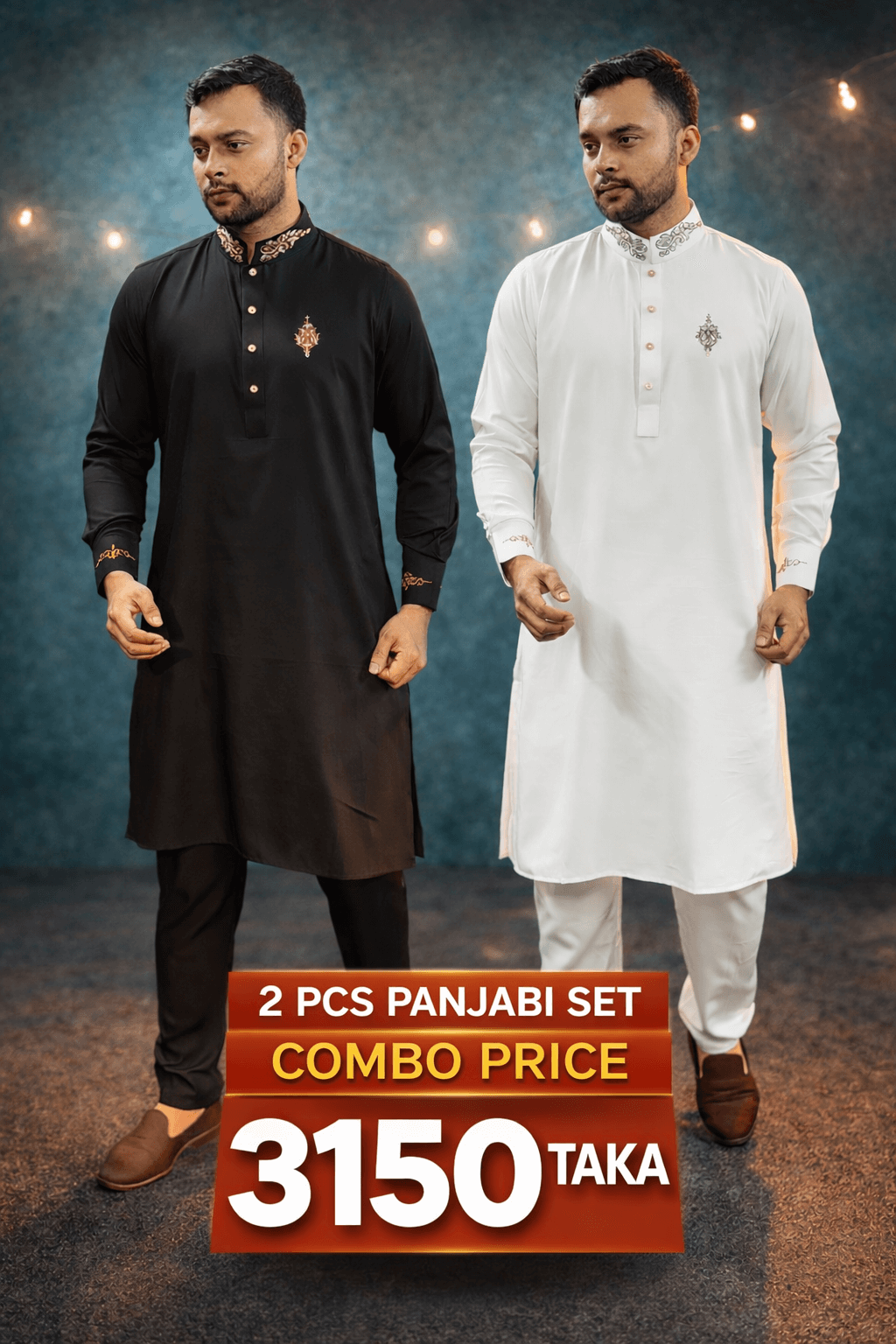White+Black panjabi payjama combo Set